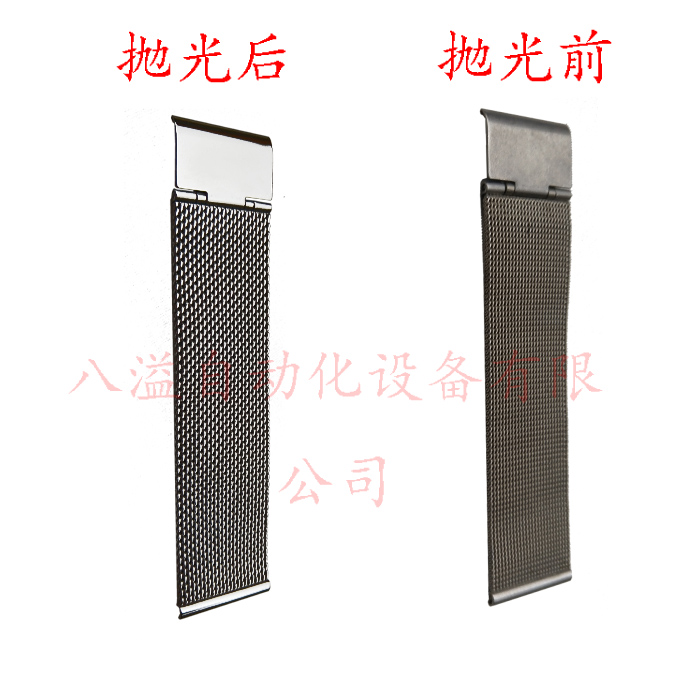 不銹鋼網(wǎng)帶由編制不銹鋼網(wǎng)和表帶扣組成、之前是用電解拋光的由于環(huán)保控制、現(xiàn)在采用等離子拋光機(jī)代替電解拋光、圖片為拋光3分鐘的效果對比。